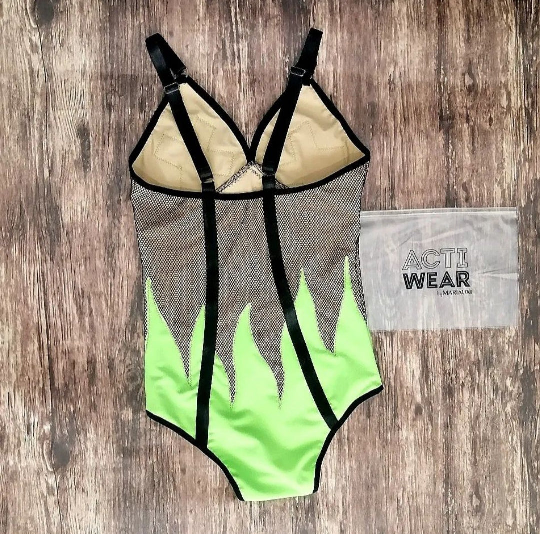 Ideal para competencias o sesiones fotográficas, formando parte de nuestra Línea golden recomendada para solicitarla con anticipación a la fecha solicitada. Body / trikini confeccionado en lycra, que permite mayor durabilidad y confort al realizar los movimientos.