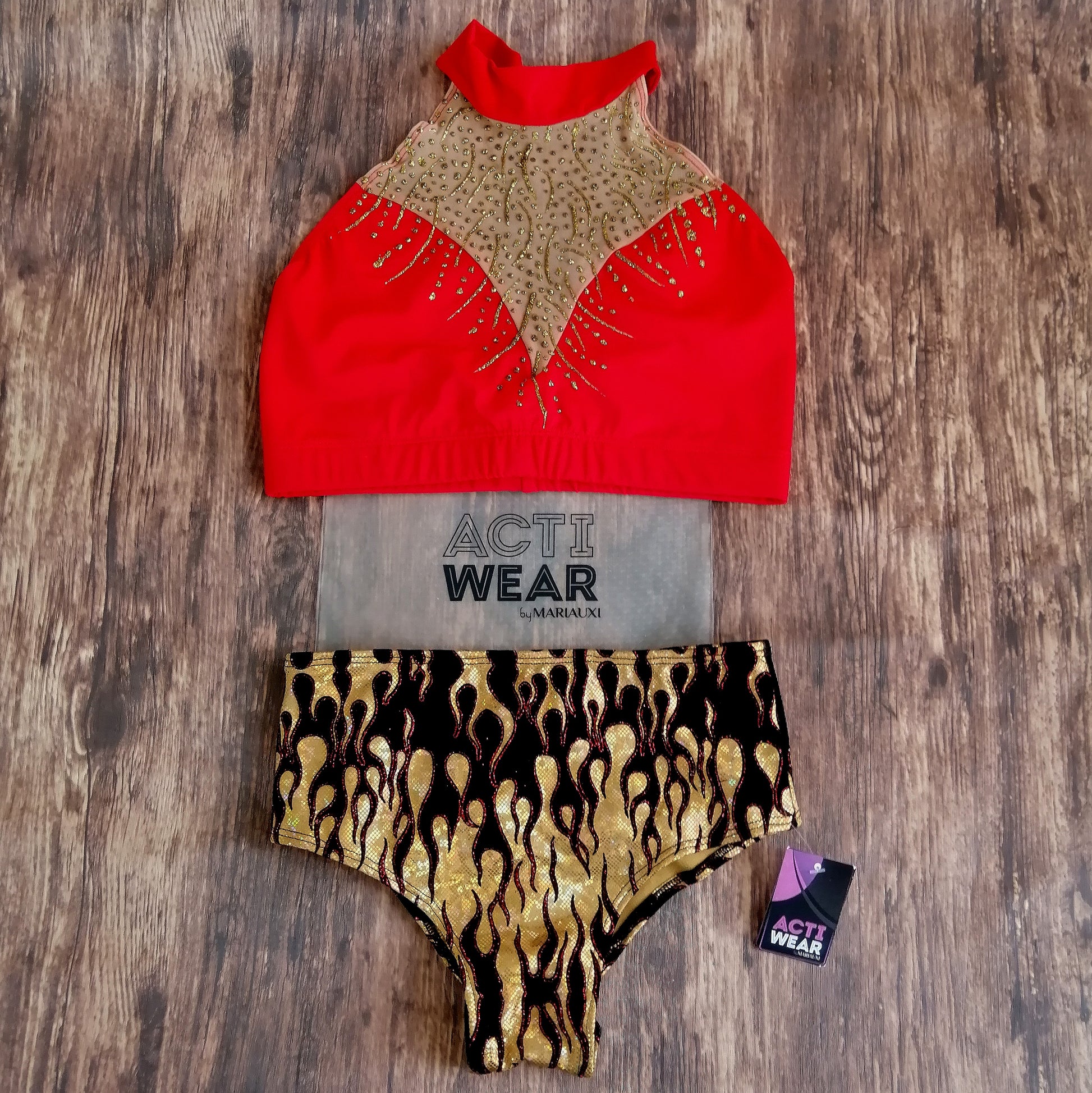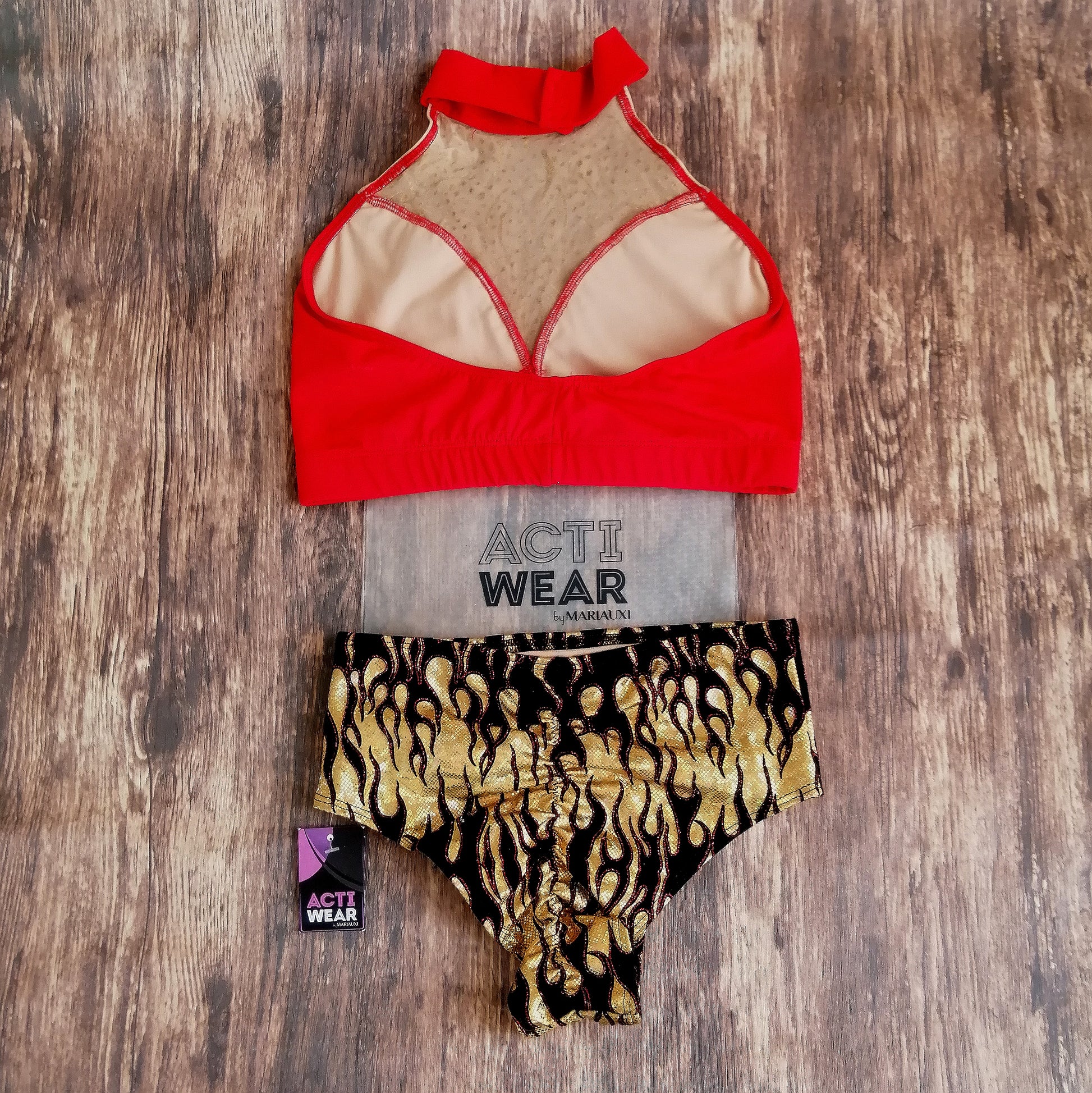 Set de la serie fuego, confeccionado en Lycra. Ideal para eventos especiales, actividades deportivas y recreativas. Piezas únicas por modelo.