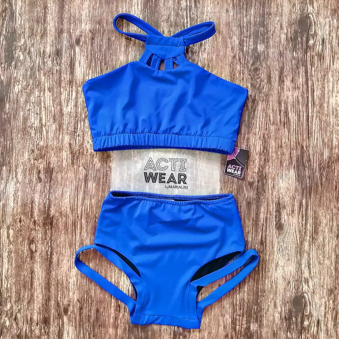 Set de dos piezas con un hermoso color verde, confeccionado en lycra con cortes de inspiración clásica que cubren de manera segura el cuerpo, tiras ajustables para el top con un diseño en el frente y panty de corte completo con tiras semi sueltas.